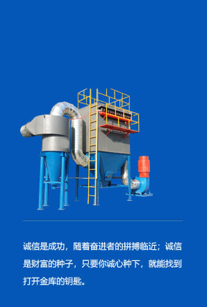 產品主要有:脈沖布袋除塵器、濾筒除塵器、旋風除塵器、木工除塵器、電爐除塵器、鍋爐除塵器、礦山除塵器、倉頂除塵器、各行業除塵器、UV光氧催化設備、光氧等離子一體機、光氧活性炭一體機、活性炭吸附箱、噴淋塔、焊煙凈化設備、催化燃燒設備、除塵布袋、除塵骨架、電磁脈沖閥...